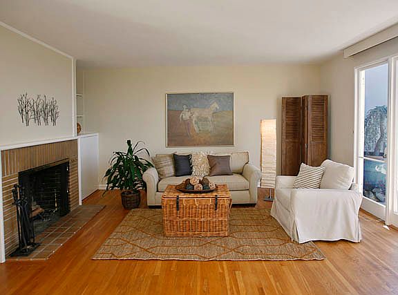 Level entry, Bay views and large garden. Main level: 2BR/1BA, formal dining, updated kitchen, courtyard and sunny deck. Lower level: 1BR/1BA, study and family room opening to landscaped fenced yard.