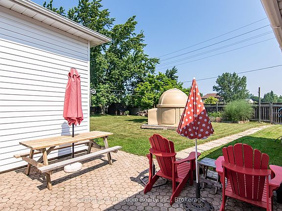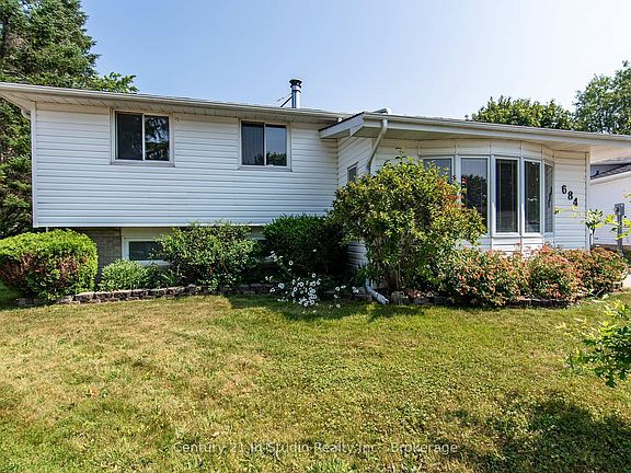 Deceptive 5 bedroom, 2 1/2 bath, 3 level sidsplit home on a large pie shaped lot. The original footprint has been increased with both front and rear additions. The spacious living / dining room combination is over 340 square feet and has a cathedral ceiling. The upper level has 4 bedrooms with the primary bedroom being an addition with a 3 piece ensuite and walk-in closet. The lower level has a family room with a wood burning stove, a fifth bedroom or can be used as an home office or games room. The addition contains a 2 piece washroom, a hobby room and a combination laundry / utility room. There is a 1 1/2 car detached garage accessed by a patterned concrete driveway that will accommodate 3 or 4 vehicles. The pie shaped lot has frontage on Johnston Crescent and the rear lot line runs along the Russell Street boulevard and has gate access. The yard has several flower and vegetable gardens, lawn area and a large brick patio for entertaining.