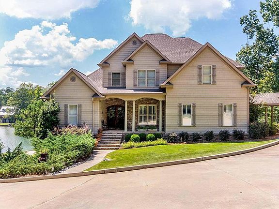 Luxury Home with Tranquil Views of Lake Martin! Enjoy the peace and tranquility of Lake Martin from this impressive four bedroom, three and a half bathroom home situated on 1.34 acres in Trillium. Unique features of this two-story home include two fireside family rooms, a luxurious main level master suite and an oversized deck to take in the panoramic lake views. Follow the path through the nicely landscaped front lawn, complete with a sprinkler system, to the covered front porch where stone detail surrounds the beautiful arched French doors. Step inside the dramatic two-story foyer and take in the vaulted ceilings, elegant crown molding, gleaming pine hardwood flooring and plantation shutters that can be found throughout this home. The formal dining room is perfect for large or intimate gatherings and offers an excellent view of the front garden. Entertain in the great room featuring a cozy stone fireplace surrounded by built-in cabinets and shelving perfect for displaying books, pottery or artwork. Step outside onto the incredible deck offering amazing views of the lake. Outdoor ceiling fans and recessed lighting create the perfect place to dine, entertain or relax any time of day. Back inside, the open concept gourmet kitchen will impress any home chef. Rich wood cabinetry is complimented by granite countertops, stainless steel appliances and a custom tile backsplash. Enjoy smaller meals at the center island with seating or the sunny breakfast area where a wall of windows offers an excellent view of the lake. Unwind around the stone fireplace in the two-story family room complete with an entertainment niche. The luxurious main level master suite offers private access to the deck plus a beautiful two-tier tray ceiling. The designer master bathroom offers a large soaking tub situated under a sun-filled window and a separate shower, both surrounded by custom tile. Dual vanities with granite tops provide plenty of storage and counter space. A comfortable guest room with plush carpet and a ceiling fan is great for overnight guests while a full bathroom features unique millwork and a beautiful vanity. Follow the wooden staircase to the second level loft perfect for a home office or sitting area. Two additional bedrooms, one with hardwood flooring and a vaulted ceiling, share a nicely appointed full bathroom complete with a double vanity. The lower level of this home offers additional storage space with plenty of room for a workshop. Step outside into the manicured backyard and relax with friends around the fire pit or follow the path to the private pier. Enjoy 244+/-ft of waterfront, complete with a boat ramp, and spend the day boating, fishing or swimming. The three-car attached garage allows for easy storage of all your vehicles and toys. This incredible home is waiting for you! For More Information about this Listing or to View all of my Listings please visit www.HomeOnLakeMartin.com or Call Me Today at 334-312-0928 to Schedule a Private Showing!