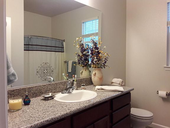 Like new condition: 4 Bedrooms, easily converted to 5; Bonus room already has privacy door, just ad a closet & you have a true 5th bedroom. Largest unit built in dev. 1912 sq.ft. Seller installed paved courtyard ideal for entertaining & BBQ's.Solid granite counters, crown molding + double window system. Inside laundry room, downstairs master suite, ceramic tiled floors. EASY TO show.