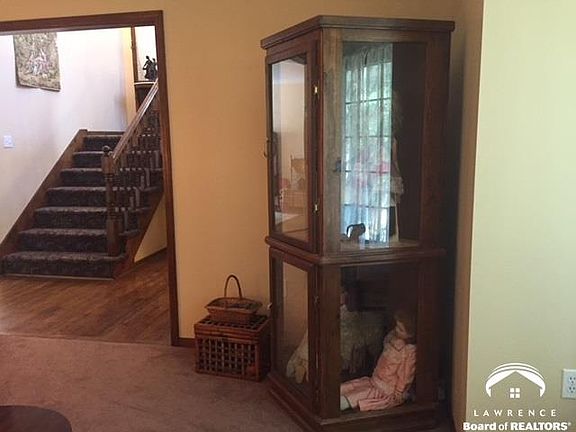 Beautiful/private setting. Tree lined lane to house. Abundance of natural light throughout the house. Large eat- in kitchen leads to sitting room and screened in porch. Formal dining room, 3 liv areas on main floor plus laundry.New bsmt flrs Bsment provides 21x10 rec/movie room, office, bedroom and lots of unfinished storage space. Wrap around deck, deck off screened porch-great for grilling, and another deck near garage area. 5 minutes to Lawrence, shopping and close to Turnpike. This is a must see!