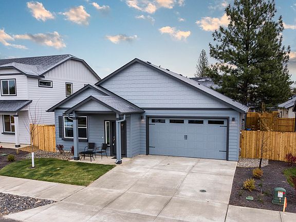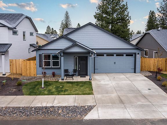 Brand new single level home in Sisters only a block from the High School & community park. The home has an expansive great room design w/9' ceilings & features a kitchen w/island, breakfast bar, quartz countertops, single bay sink, a full suite of brand-new stainless appliances, quiet close cabinets, a pantry, dining area, & a spacious great room w/fireplace. The primary suite is separated from the two guest bedrooms & the bedroom has space for a king bed, a double vanity w/quartz counters, enclosed toilet, spacious closet, & a walk-in shower. Both guest bedrooms are spacious & share a well laid out guest bath. The utility room on the way to the garage comes w/a brand new washer/dryer. The garage easily fits two cars & has a man door. The back yard is fully fenced/landscaped w/low maintenance river rock & mature pine tree. This home comes w/a central air heat pump w/AC, a living room set, bedroom furniture set, all the appliances, storage shed, snow blower, & garage refrigerator too!