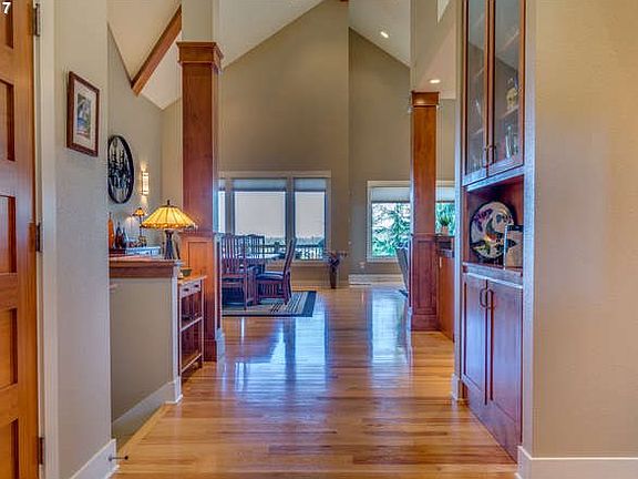 Beautiful custom home soaring ceilings & spectacular views! Hickory floors throughout the main floor, open concept great room wstunning vaulted ceilings & beams, custom built in's. Chef's kitchen with gas range and SS, large DR w/views, leads to cedar ceiling covered deck. Master suite on the main & second bedroom/den on main. 20' x 30' Partially finished basement w/wet bar, full bath & bedroom, study and 550SF to make your own! Views!