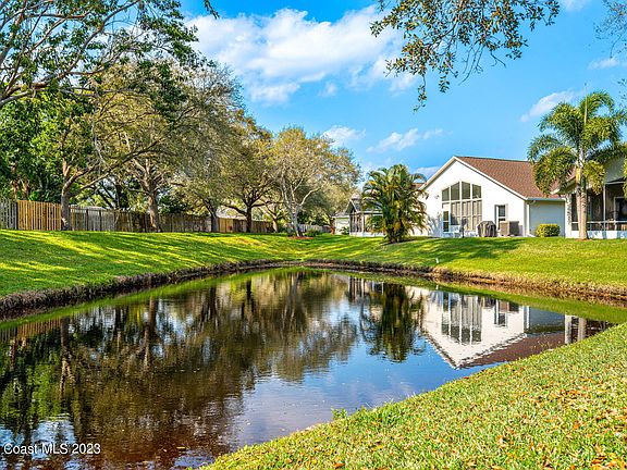 Enjoy Florida Living in Compass Pointe, a 55+ gated community in West Melbourne! The residents love the convenience and the unbeatable location! Premium waterfront lot on a quiet cul-de-sac. As you cross the welcome mat, you will appreciate the soaring ceilings, and the home interior feels spacious and inviting. The kitchen is a cook's dream with a Jenn- Air double oven w/ gas range, tile backsplash, granite countertops, a convenient kitchen island & nook. The primary bathroom features his & hers vanities & a spacious walk-in shower. Entertain guests in the private screened lanai overlooking the water or enjoy a quiet evening on the screened front porch. The electric screen garage door makes it easy to enjoy the fresh air while working in the garage. The roof is only 2 yrs ( 2021) & the H/W heater is 2019, HVAC 2020 so you can move in w/ peace of mind. The community amenities include a heated pool, spa, putting green, fitness room, shuffleboard, Bocce ball & more. The location is unbeatable, w/ easy access to shopping, dining, & beautiful beaches. This home is sure to be the perfect retreat for anyone looking to enjoy the best of Florida living.