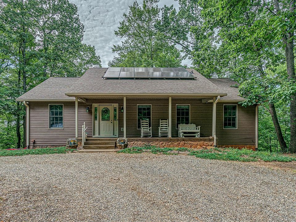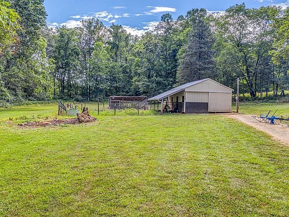 Looking for privacy yet convenience to amenities? This adorable home is it! Bring your horses as this includes a 3 stall barn with lean to, approximately 6 acres of fenced pasture area, separate garden space, stream, separate well for farm, detached garage/workshop at home site. Solar Panels & Whole house Generac generator & 1000gl propane tank. Home has rocking chair front porch and screen porch in back on entry level. Lower level has sunroom with hot tub. All of these areas are perfect to relax in peace and watch the deer and other wildlife. Entry level of home has 3 bedrooms 2 baths. Entry master has jetted tub and walk in closet. Cathedral ceilings. Large pantry in nice size kitchen. HW heater less than 5 years old. HVAC approx. 3 years old.