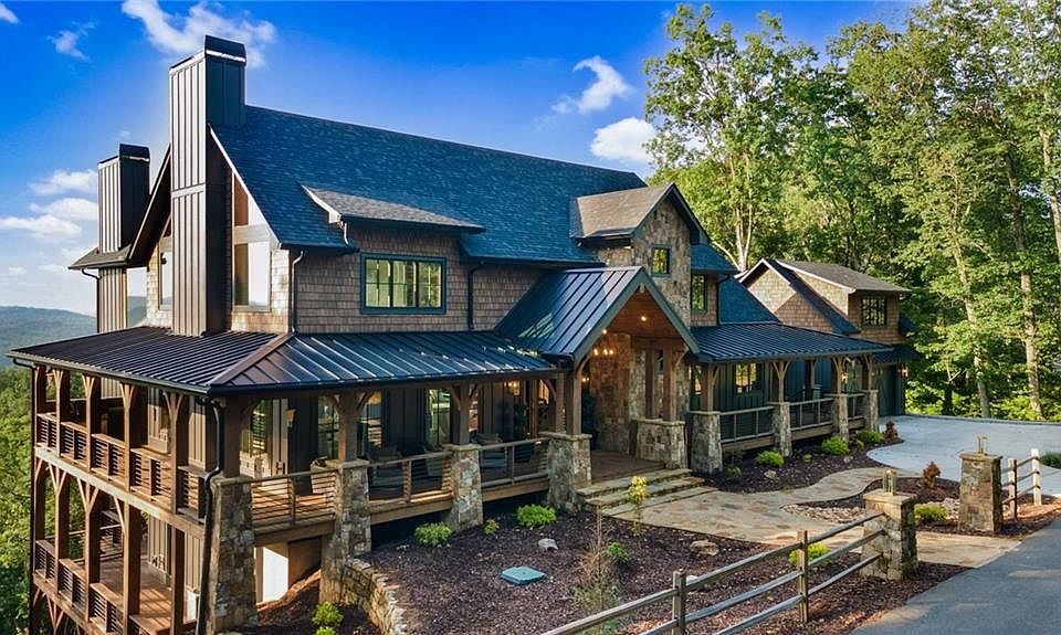 Welcome to your luxurious vacation retreat in the prestigious Blue Ridge Heights Community in Blue Ridge, GA. This stunning home offers an abundance of space and lavish features that will exceed your expectations. Spanning across 6,320 square feet, this home boasts 6 spacious bedroom suites, each adorned with their own full bathrooms, providing ultimate comfort and privacy. Additionally, there are 2 half baths conveniently situated throughout the home. Step inside and be captivated by the professionally decorated interior. The primary suite is a true sanctuary, complete with a coffee bar and office nook, allowing you to start your day in tranquility. The open floor plan features large glass windows, flooding the space with natural light and offering breathtaking views of the surrounding mountains. Cathedral ceilings add an airy and grand ambiance to the home. The gourmet kitchen is a chef's dream, equipped with top-of-the-line appliances and ample counter space for all your culinary creations. For those movie nights, indulge in the state-of-the-art movie theatre, providing the ultimate cinematic experience. Stay fit and active in the full gym, or unwind and relax in the sunken hot tub with glass railings, allowing you to soak in the majestic beauty of the outdoors. Wine enthusiasts will appreciate the well-appointed wine cellar, perfect for storing and showcasing your collection. The sumptuous terrace-level entertainment parlor features a magnificent floor-to-ceiling onyx wall, creating a truly luxurious atmosphere for gatherings and celebrations. Step outside onto the entertainment deck, where you'll find an outdoor fireplace and two additional sophisticated fireside retreats, ideal for those cool mountain nights. Host barbecues and outdoor gatherings with ease using the outdoor grill. The two-car garage provides ample space for your vehicles. As you explore the multiple observation decks, you'll be greeted by stunning long-range views, offering a picturesque backdrop for relaxation and serenity. Additionally, the home features a bunker room for added peace of mind. Located within a gated upscale exclusive community, this home is less than five minutes away from Downtown Blue Ridge, ensuring easy access to the area's finest dining, shopping, and entertainment options. Schedule your private showing today and experience the epitome of mountain living in style and sophistication.