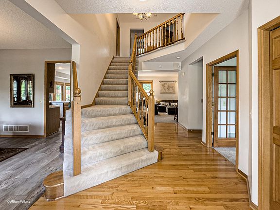 Original owners of this Rottland Homes model features 3 large bedrooms and 4 baths and hard to find attached 3 car garage. Beautiful 2 story angled staircase to the upper level. The master bedroom has an impressive ensuite bath with tile floors and walk-in shower and a large corner jacuzzi tub. Walk through the master bedroom french doors to a sitting room. Another bonus, laundry room is located on the upper floor also! Located on the main floor is a large, South facing Great Room with 9 ft ceilings and cozy wood burning fireplace. Plenty of windows to view your deck with attached gazebo, large fenced back yard and paved fire pit. There is an eat-in kitchen with double bay windows with plenty of sun, as well as a separate formal dining room and office. The lower level consists of large family room, 3/4 bath, large storage room wth built-in shelves and work bench.