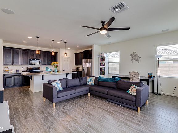 Why buy new? Come and see this fabulous property located in the East Side of Buckeye and close to the 10 so you are much closer to the city!! Open floor plan for added ease & convenience with 4 bed, 3 bath and formal dining area. You'll love the open concept kitchen equipped with high-end appliances, pantry, island for prep & breakfast bar w/pendant lighting, and beautiful cabinets. The split master bedroom has gorgeous bath with soaking tub, double sink vanity, and step-in shower. Pie-shaped, spacious backyard is larger than most and is a blank canvas for your future Desert Oasis. Solar panels are OWNED!! Take a look at the pictures this place is awesome! Come see it today before it's gone!