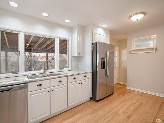 Welcome to 684 S Quari St – this updated 3-bedroom, 2-bathroom home offers 1,920 square feet of living space, providing the perfect blend of style and functionality. Step inside to discover newly refinished wood flooring gracing the main floor, complemented by fresh paint throughout, creating a bright and fresh atmosphere. The living area features a wood-burning fireplace and built in book shelves, while the adjacent kitchen boasts new appliances and ample cabinet space. Venture outdoors to the fenced backyard, featuring a shed for added storage and a covered patio – an ideal spot for enjoying Colorado's stunning sunsets or hosting summer barbecues. Downstairs, the large basement awaits your personal touch, complete with new carpeting and a spacious bedroom and family room. The main floor bathroom has been completely remodeled. Enjoy convenient access to nearby parks, shopping centers, and dining destinations. Don't miss your chance to experience the best of Aurora living – schedule a showing at 684 S Quari St today and make this your forever home!