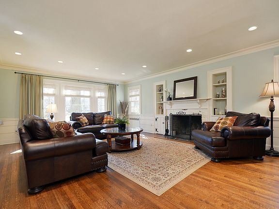 An enchanting open porch invites you into this immaculate home highlighted by spacious rooms, gorgeous hardwood floors and plenty of windows to bring the outdoors in. Living room with wood burning fireplace flanked by built-in cabinetry and floor to ceiling windows. Cozy family room w/bay window and spacious FDR w/ built-in corner cabinets. Center island EIK offering plenty of work and storage space, granite countertops, SS appliances, separate dining area w/window seat w/bay window and access to side open porch and patio. 1st floor bedroom/office w/full bath. 2nd floor MBR suite w/private bath and WIC. 3 addl bedrooms and full bath. Finished lower level rec room w/fireplace, laundry and storage. Convenient to schools, parks and town, this lovely home has it all!