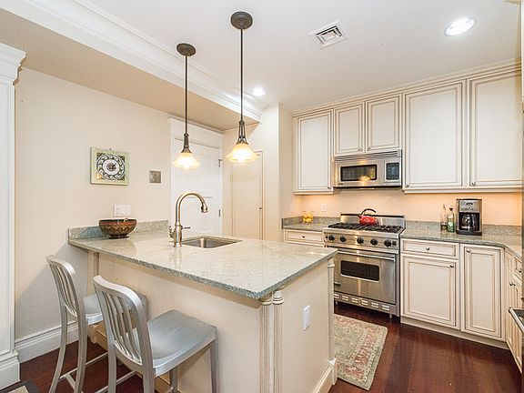 2 bedroom 2 full Bath with one car Deeded Parking! Unit features a first floor Master Suite featuring walk-in closet & Carrera marble bath with both a whirlpool tub and a separate marble tiled shower. The lower level has an abundance of light from the triple glass slider that leads to your large private patio with direct access to your deeded parking spot immediately behind unit. Open kitchen fully equiped with granite counters, Viking stainless steel appliances & breakfast bar. Large living room with gas fireplace, built-in benches & plenty of room for a dining room table. Lower level also boasts 2nd bedroom and full marble tiled bath, Brazilian cherry hardwood floors, exposed brick, beautiful open stairway, laundry in-unit and an abundance of storage. Heat, hot water and gas all included in condo fee. Come see this Incredible unit today!