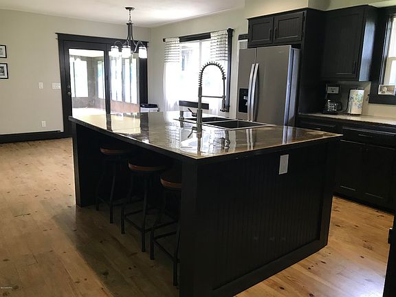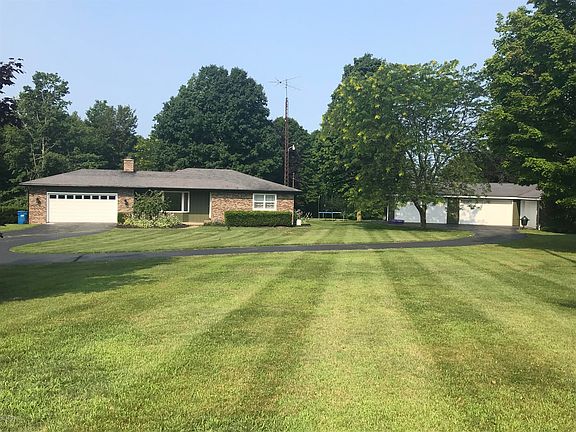 8.27 wooded acres, 3 bedroom, 2 full bath, pristine ranch home. Open floor plan, updated kitchen featuring wood flooring, center island, cement counter tops. 3 season room, finished walk-out basement. 2 car attached garage. Plus pole building, three overhead doors with 24x48 finished family room/entertainment area and 24x48 shop with drive through bay. Blacktop driveway. Mowed paths throughout the property and spring fed brook.