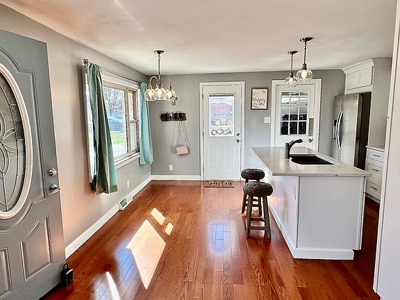 Solid & Updated 3 bedroom, 2 bath home & 2 car garage with fully fenced backyard. Main level has fully renovated beautiful kitchen features: quartz counter tops, vented hood, dining area, new cabinets, decorative tile backsplash, center island breakfast bar, stainless built-in oven/microwave, dishwasher, refrigerator, and gas range. Spacious Great Room w/ vaulted ceilings & engineered hardwood floors. Lower Level has 2nd living space w/ gas starter fireplace, fully renovated full bath, Office Space and big laundry room all w/ ceramic tile flooring. All 3 bedrooms are on the Upper Level. Master bedroom suite w/ multi spray nozzle shower. Freshly stained hardwood floors. Newer windows throughout home. Tankless continuous hot water. Backyard features a large concrete patio w/ pergola, and 2 mini barns. Extended driveway goes alongside of garage for boat/camper parking. Updated gas lines & shut off valves. Office is a closet & ready for door to make into 4th bedroom if needed.