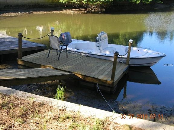 Move in Ready! This is a 1994 elevated modular that has a 3 bedroom 2 full bath layout that is partially furnished. Big corner lot right on the canal close to everything including bus transit. Just completed remodel includes: new carpeting in bedrooms, new vinyl planking in great room, new vanities, light fixtures, new paint and blinds have been replaced. The asphalt shingle roof was new in 2017. Brand new floating dock that you can fish off of to your heart's delight. The new dock is installed and ready for your water toys. The concrete seawall is in very good condition. Only 10 minutes to the gulf. This would be a perfect vacation home as well as permanent residence. Don't miss the opportunity to own this comfortable home at a comfortable price.