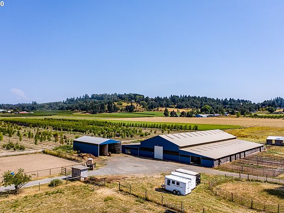 Equestrian Facility with indoor arena and 33 stalls conveniently located 5 minutes east of Lancaster Drive, Salem. View the front pasture from this adorable farmhouse with hardwood floors and fireplace with oak mantle, vinyl windows, AC, and fenced yard with RV pad. Room for your trainer in the permitted manufactured home located on the property. Water rights for 9.8 acres. Great potential for board income.
