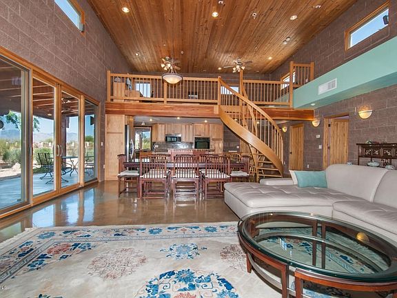 Stunning Custom Masonry home w/ Fabulous views in all directions features wide open flpln, huge picture windows, sky high tongue/groove ceilings, Gorgeous Island Kitchen w/ Hickory cabs & Granite Counters. Separate guest quarters w 3/4 bath, it's own AC/Heat/outdoor patio. Beautiful scored concrete flrs, Pella Low-E windows & solid Alder doors throughout. Elegant spiral stairway to spacious loft w/corner windows & wood floors making this a great setting for office/ workout rm. Master Ste has its own patio,lg walk in shower,dbl sinks & Rich Cherry cabs. Other bdrms share exquisite bath w/spa/tub shower & dbl sinks. Outside boasts beautifully landscaped yd w/good sized cov'd patio, Awesome flagstone entertaining area w/BBQ, Frplc & sink. All on 3.3 acres and a privately gated road.