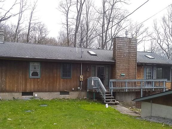 This is why we live in the Finger Lakes. Comfortable and cozy home sites on 20 acres with pond in this most private of settings. Walk into the large screened in porch which lends itself to 3 season living. Walk straight into kitchen/dining area and then upstairs into the living area with additional front sitting room with windows on three sides...great for your family or retire in the natural beauty this one has to offer. Updates include, new woodstove and chimney, electric heat converts upstairs sitting room into a full year round viewing experience, generator hook-up expanded to service major mechanicals, LP gas line brought in for gas cookstove, the list goes on.