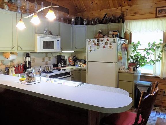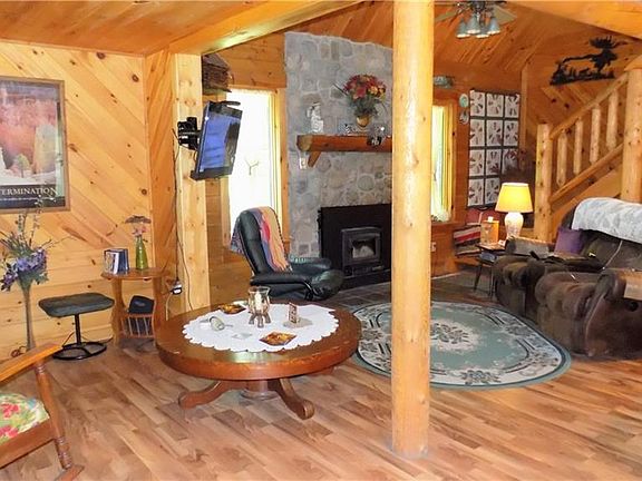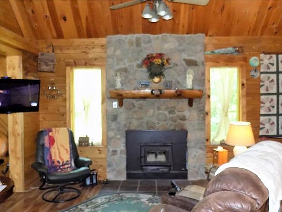 Secluded up on a hill, sets this awesome log home on 4.60 acres. Home features 2 lg bedrooms, 2 full baths. Open concept living, dining & kitchen which includes appliances, plus washer, dryer & fireplace w/ wood insert. Upper floor sports a walk-way to the balcony that over looks the beautiful acreage. Extra bonus includes fruit trees, grape arbor, fish pond and a fire pit for your enjoyment. 30x40 heated garage/pole barn, w/concrete floor, workshop, woodstove,bar and entertaining area. Rocking chair porch for those lazy summer days. City water, new roof, gutters and guards . Easy commute to Indy ,Brazil or Terre Haute. a bar. plus woodstove.