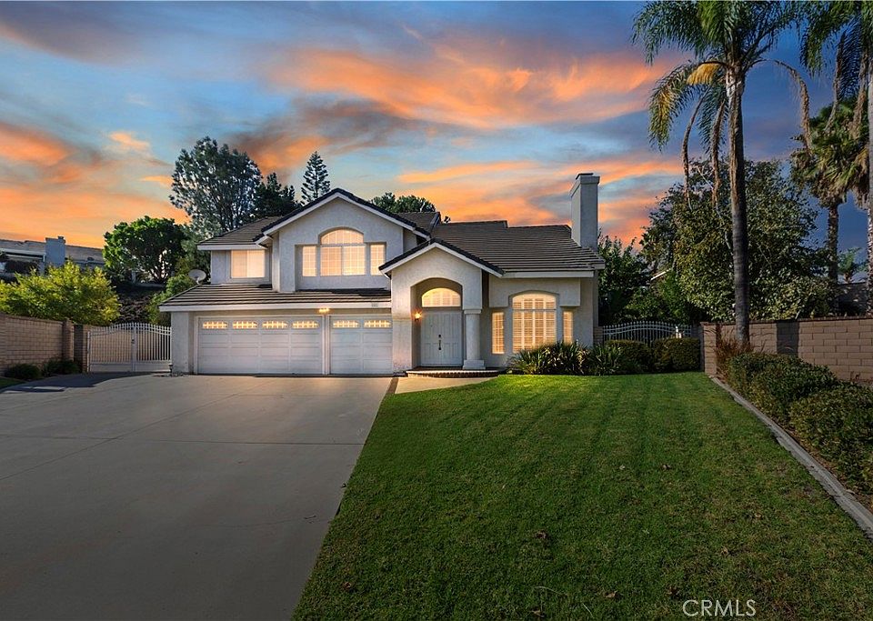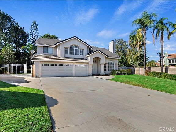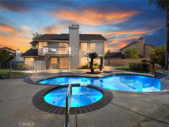 Step up to luxury in this recently remodeled home located on a quiet cul de sac in Mission Grove area of Canyon Crest Hills. This well-built Brock home is perfect for the growing family with one bedroom downstairs. Located on the second floor is a super-sized family room with built in bar. New tile flooring on the lower level and newer carpet on second level provide a clean look add a modern feel to this home. Additionally, there are two fireplaces that bring a feel of comfort to this lovely home. A lovely wooden staircase creates a spectacular entrance led to the prime bedroom that has a large bedroom with walk out balcony and a stunning view of the lush green back yard and palms trees. A Walkin closet and separate closet, dual sinks, separate roman tub and shower create ease for work readiness. California Living is at its best with a free form pool with rock border accents, wrought iron fencing allow for child pool safety. Side yard adds for additional storage. This home is move in ready and offers incredible e California Living at its best!