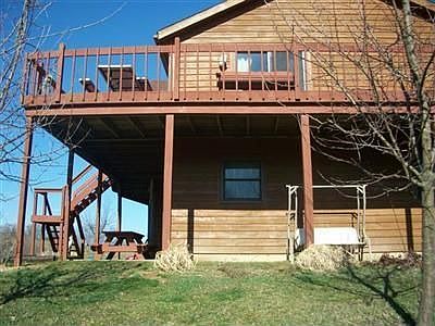 Wonderful cedar retreat home on 10 acres. House features river-rock fireplaces, cathedral ceiling, chalet style front with lots of windows for light and to enjoy the view, wrap-around deck with great view of nearby pond, lots of wildlife and woods for recreation and hunting, slider door from master BR to deck, oak kitchen with island, vineyard with 80 Vidal grape vine, apple trees, etc. Private setting off of road. Located near Leesville Lake with some of Ohio's best fishing. $7,000 - $10,000 royalties annually from gas right away. Call today to schedule a private showing.