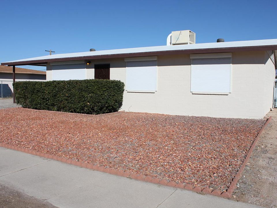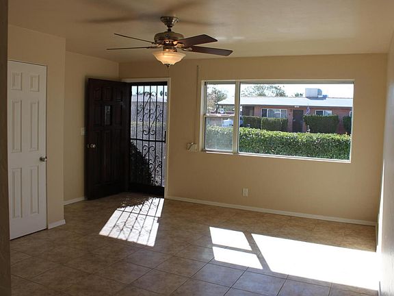 Updated and move-in ready! This home has been well cared for and been in the same family since it was built. Kitchen has newer appliances, granite counters just installed, plus plenty of cabinet space. Updated bathrooms, tile floors in kitchen/bath/living room/hall and wood laminate in bedrooms. Dual pane windows throughout, plus rolling shutters on all windows. Nice workshop space, huge backyard with 3 double gates for access. 2 side gates and 1 alley. Covered patio, and newly renovated laundry room. Located in a well kept neighborhood that is convenient to shopping, public transportation and other amenities. Evaporative cooler conveys as-is.