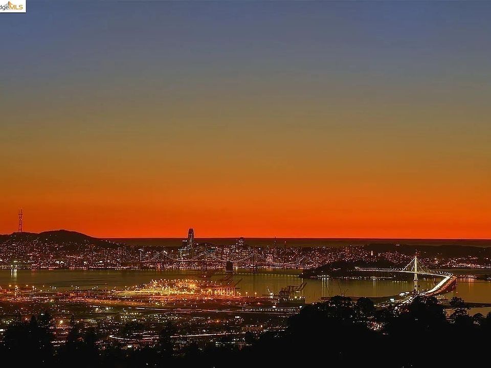 Beautiful custom Mediterranean with elegant finishes and stunning bay views converge to produce this exceptional solar equipped home set above the Montclair district in Oakland. Design elements include vaulted ceilings, timber, iron, stone and large windows to the sensational view. The main level features an open floor plan with a large cook's kitchen, family room, living room and dining room is perfect for entertaining and admiring the panoramic view. A full bath and office/plus space on the main level provides a guest suite/office with murphy bed included. The lower level with the master suite and bath with jetted tub allow you to soak in the sweeping views of the Bay Bridge, Golden Gate and beyond. Two additional bedrooms, an adjoining family room, laundry room and storage finish this level. Enjoy tranquility and privacy while being just minutes from Huckleberry and Sibley regional parks.