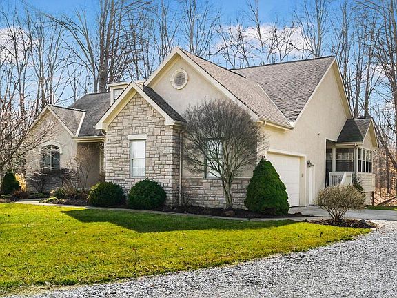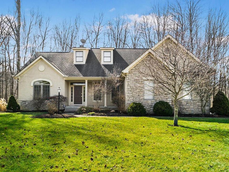Pristine ranch home located on 2.38 wooded acres. Privacy with an easy commute to downtown Columbus. Minutes from I-71 and Rt. 36. Vaulted great room with a bank of windows that overlook the woods. The eat-in kitchen features 42'' white cabinets, a center island, stainless steel appliances and hardwood floors. Formal dining room with a tray ceiling. The master bedroom has two walk in closets. Twin vanities and a whirlpool tub highlight the master bathroom. First floor laundry room with cabinets and a sink. Enjoy the fireplace in the spacious lower level family room. Finished walk out basement. Florida room with a deck. Relax on the large private paver patio. Current owner added a geothermal HV/AC system at a cost of over 25K with an estimated five hundred dollar a month energy savings.