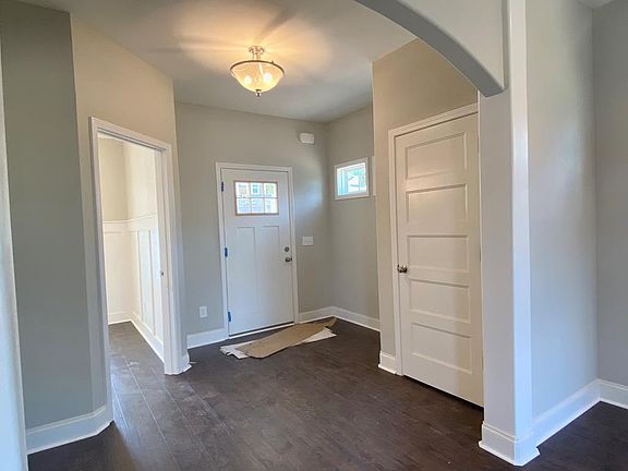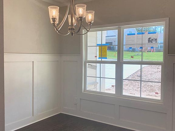 The Ruby is an open concept floor plan with a spacious foyer area, kitchen with a farmhouse sink with a window overlooking the backyard, island with pendant lighting, custom cabinets, quartz countertops, tiled backsplash, under cabinet lights, recessed lighting, smooth 9 ft ceilings, LVP throughout the main level, built in drop zone, study/office, wood staircase, oversized owner's suite w/ vaulted ceilings, tiled shower, separate tup, double vanity, huge walk-in closet, covered back porch with wood burning fireplace and spray foam insulation in attic.