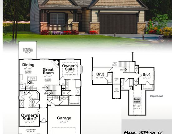 The Cedar is a 2-story floor plan with two master suites on the main level, covered front porch, 2-story foyer, LVP throughout the living space, open kitchen with island, farmhouse sink, large pantry, custom cabinets, quartz/granite, tile backsplash, under cabinet lights, separate breakfast area, 9 foot smooth ceilings with recessed lights, drop zone with cubbies, wood tread staircase, two bedrooms plus a bonus room upstairs, covered back patio with wood burning fireplace and cable connection.