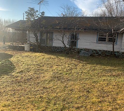 This home has lots of potential includes a fishing pond, 2 small sheds, fruit trees, out house. this property has a total of 6.92 acres that is fenced and backs to the water tower. No plumbing and seller is selling as is.
