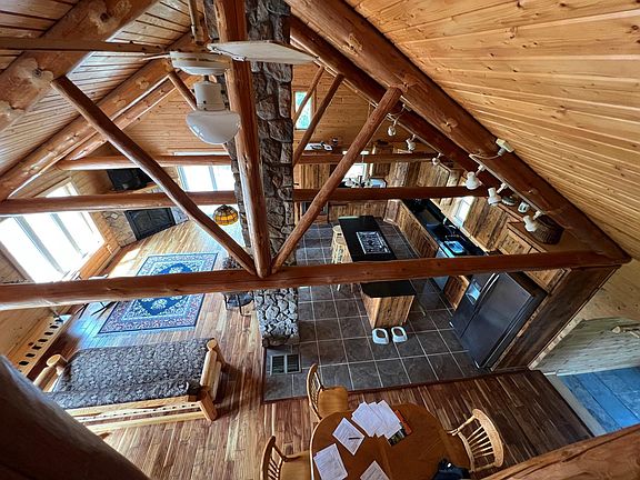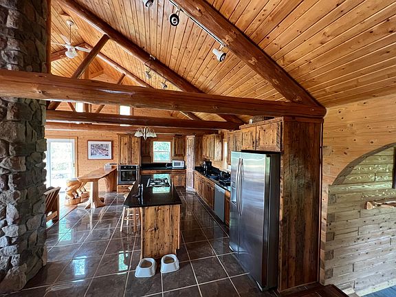 If you are looking for a beautiful full time home, hobby farm or a place to escape and enjoy the outdoors, this is it! This sawn log home has an updated kitchen which includes stainless appliances which add to the beauty of the one of a kind cabinetry (reclaimed old growth white pine from the Globe Elevator in Superior, WI, erected in 1887). Foragers will enjoy wild fruits including choke and pin cherries, high bush cranberries and raspberry bushes, not to mention the domestic fruit trees in the yard. Once you've harvested store your wares in the 11X16 root cellar. A hunter's paradise with bear, deer and grouse, and hundreds of acres of public land to the east and north. The Generac 20k watt propane generator ensures you will always have power. Check out the wrap around porch and private gravel pit too. There are just too many attributes to mention, this is a must see. Most furniture stays unless not wanted by buyer.