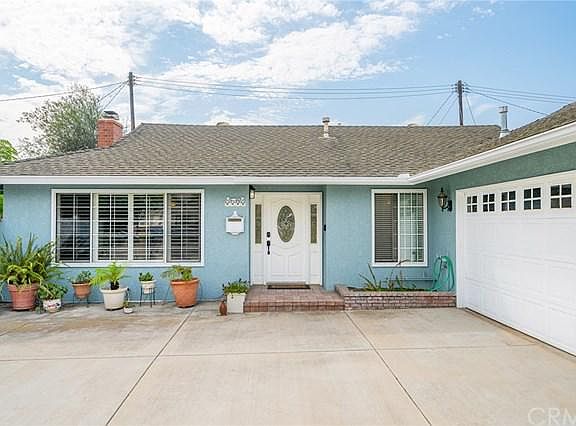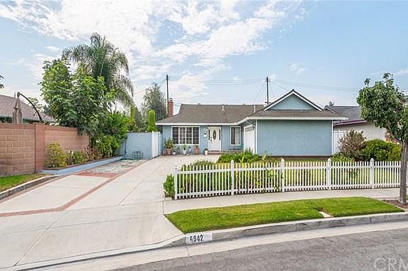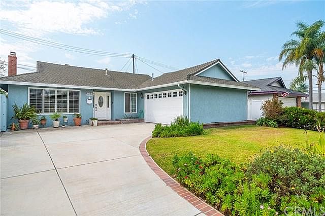 Super cute Goldenwest Estates home in the highly desirable Huntington Beach Union High School District. Enjoy the ocean breezes in this bright and sunny single-level three bedroom two bath detached home on large lot with a dreamy white picket fence and expanded driveway and a 2 car garage. This open concept charmer offers a spacious dining room, sitting room with wood-burning fireplace, and a large living room with vaulted ceilings, wall to wall windows, and french style sliding glass doors that open onto the private back yard. Upgraded throughout with beautiful tiled floors, recessed lighting, scraped ceilings, and crown molding throughout. This home boasts a newly remodeled kitchen with quartzite countertops and backsplash, 2 years new matching stainless steel appliances, breakfast bar, large pantry, and built-in hutch. Both bathrooms have granite countertops, upgraded fixtures, with an expanded spa-like shower in the master bath, and garden window in the guest bath. Built-in bookcases and desk with a queen-sized Murphy bed make one of the bedrooms an ideal in-home office that easily converts into a guest bedroom. Expanded with permits to have about 1548 sq. ft. of living space with newer roof, upgraded windows and doors, and a freshly painted exterior. New Heating and Ac systems with all new ducting in 2019. This is a must see!