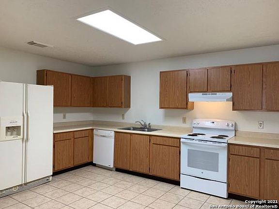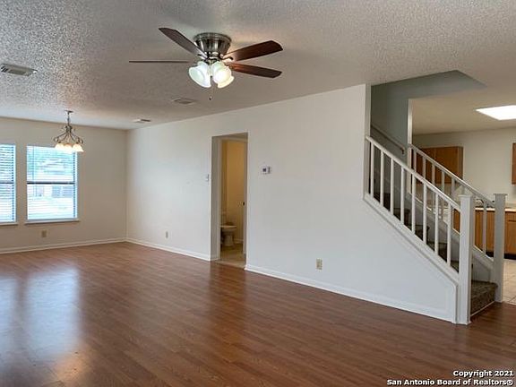 Fresh paint, new 2" blinds throughout. Solid surface floors downstairs. Carpets upstairs professionally cleaned and steam sanitized. Huge covered patio (576 sf per tax office). Garage is more of a 1.5 car garage. Community pool and elementary school within the area. Super convenient to either Ft Sam or RAFB. Small yard as the home is on a zero lot line tract. Please see instructions for application in additional information link. More photos coming soon.