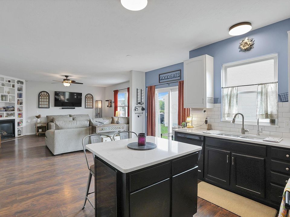 Welcome home to this beautifully updated and move-in ready 4-bedroom home! Inside, you'll find a bright and open-concept layout connecting the kitchen, dining, and living areas. The living room boasts a custom bookshelf around the gas log fireplace, while the kitchen features quartz countertops and an island with a wine refrigerator. Upstairs there are 4 bedrooms, 3 of which have walk-in closets and 2 full bathrooms. The spacious primary suite has vaulted ceilings, walk-in closet, a large walk-in tiled shower, and a double vanity in the en-suite bathroom.