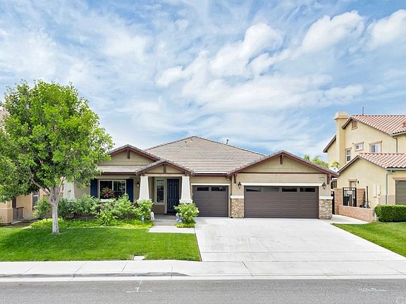 Eastvale stunner!! This mint condition single story home is located on a quiet tree lined street in the beautiful community of Trenton Square in the heart of Eastvale. From the cozy front porch as you walk up to the front door to the stone planter filled with bright colorful flowers in the rear yard, not a thing has been missed in this fabulous home. This home has new porcelain tile wood like floors throughout the entire home, custom base boards and crown molding throughout, new paint and new custom epoxy flooring in garage. The kitchen is a dream for any home cook. There is plenty of counter space including a breakfast bar and side board with loads of cabinets and a walk in pantry. Sparkling stainless steel appliances and stunning granite counters highlight the space that opens up to the family area with cozy fireplace. The master bedroom has new French Doors that open to the backyard and a spacious master bath with dual sinks, vanity and soaking tub with adjacent shower - not to mention the huge walk in closet. The secondary bedrooms are spacious and bright with wood blinds and mirrored wardrobe doors. The backyard is peaceful and serene with custom stamped concrete patio, stone planters with bright foliage and a lovely covered patio to enjoy those upcoming summer days and nights. All of this and so much more. You will not be disappointed.