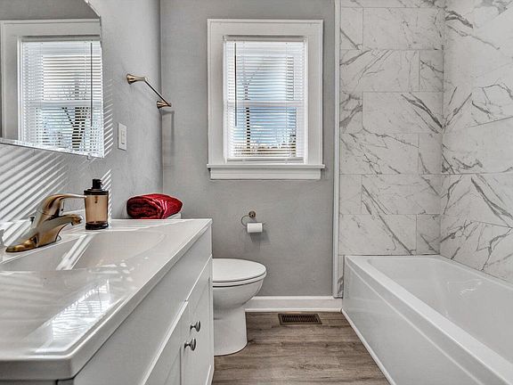 Completely remodeled in 2023 featuring a new kitchen and baths. A bonus office, craft,den,laundry room beside kitchen has its own heating/cooling system. Inviting large front porch,driveway has plenty of room for parking. New roof,heat pump,plumbig,electrical and siding. Private backyard.