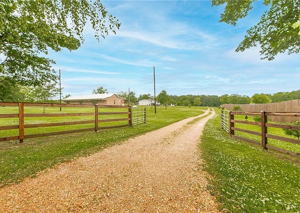 BEAUTIFUL RANCH STYLE HOME sits on 2.00 ACRES. Beautiful yard that offers a lrg 30x32 WORKSHOP, fenced-in chicken coop with a covered area for your outdoor equipment, lrg covered area for entertaining year round. Absolutely beautiful solid pine wood interior wall coverings, corner fireplace, open floor plan, lrg primary BR, with 2 walk-in closets, primary bath has separate tub/shower. WHOLE HOUSE GENERATOR. Flood (x). Measurements are approx, not guaranteed. NEVER FLOODED.