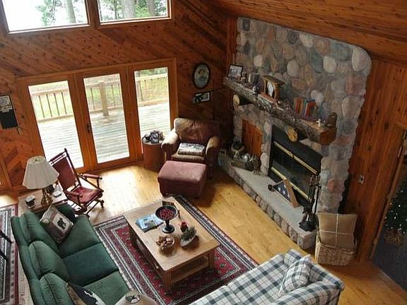Here's a beautiful, custom constructed home on perfectly level, wooded lake frontage on the Three Lakes chain. Much of the interior is rich Cedar with vaulted ceilings, large windows toward the lake, 2 fireplaces, an expensive sundeck, a master suite, 2 garages, a permanent pier, and a storage shed. The appliances are included and much of the furnishings are negotiable!