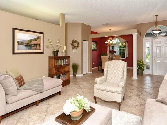 Welcome to an inviting and warm home in Mote Ranch. From great curb appeal to a spacious floor plan this home has it all. Upon entry the living room opens up to the private pool area with plenty of space for entertaining family and friends. The kitchen has tiled countered tops, a breakfast bar and dinette adjoining the family room, also with views of the pool. There are 3 bedrooms and a large master suite with his/her walk-in closets. Both baths have been remodeled with granite top vanities and the master bath has walk-in shower, dual sinks and a garden tub. The roof has been replaced 4 years ago. This truly is a move-in ready home. Mote Ranch offers a community pool, playground, fishing dock and kayak launch. Easy access to the new University Town Center and I-75.