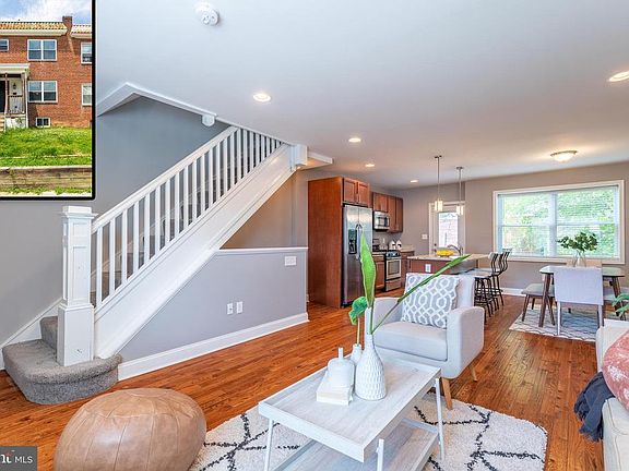 RECENTLY RENOVATED PORCH FRONT HOME W/ DETACHED GARAGE IN DUNDALK HIGHLANDS - this spacious home features an open floor plan with hardwood floors throughout the main level, large living room, separate dining room, eat-in island kitchen with ss appliances and granite countertops leading to fenced rear yard with detached garage. Upper level offers 3 bedrooms, hallway full bathroom and fully finished walk out lower level with full bathroom and laundry room. This home was just repainted and new carpet installed throughout - a comprehensive renovation was completed in 2016 including new electric, hvac, plumbing, roof, windows, floors, bathrooms, kitchen, basement waterproofing and so much more!