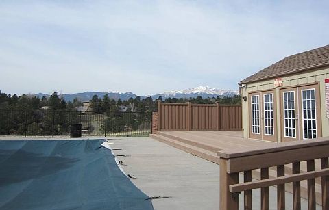 Beautiful open concept 2 bedroom, 2 bath 2-story condo backing to open space with unobstructed Pikes Peak view. Brand new carpeting & linoleum flooring. Fresh paint. New blinds. Newer vinyl windows & white 6-panel doors. All appliances including washer & dryer to stay. Dogs allowed. District 20 schools. Cozy living room with wood burning fireplace. Open kitchen with breakfast bar & garden window looking west. Main level dining area with sliding glass doors to deck with sweeping mountain range, perfect Pikes Peak views & no rear neighbors. 2 upper level bedrooms both with vaulted ceilings & private baths. Unfinished walkout basement with rough-in for future bath. Fenced back yard with covered patio & gate that leads out to open space. Monthly HOA dues of $198 covers common utilities, snow & trash removal, lawn care, pool, exterior maintenance, building insurance, management & covenant enforcement, all ensures for carefree life style!