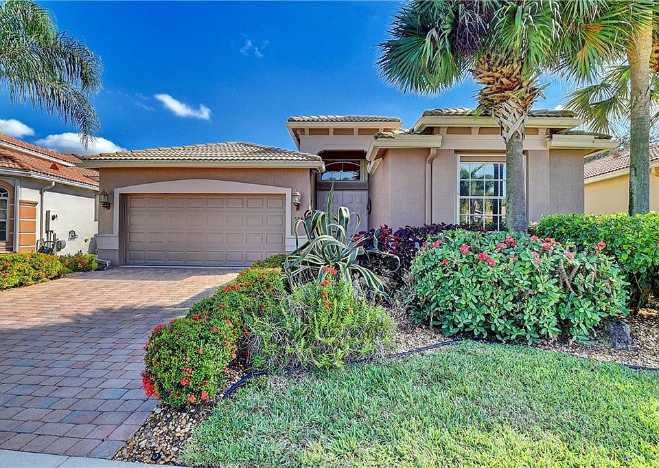 DON'T MISS THIS ELEGANT YET COMFORTABLE 3 BEDROOM, 2.5 BATH HOME WITH EXPANSIVE SCREEN ENCLOSED PATIO & GORGEOUS LAKE VIEW. THIS MOVE IN READY, MODENA MODEL IS TASTEFULLY APPOINTED & NEWLY PAINTED THROUGHOUT! THIS HOME IS LIGHT & BRIGHT WITH SOARING CEILINGS, CROWN MOLDING, HIGH END DESIGNER LIGHT FIXTURES, LED HIGH HATS, NEUTRAL TILE SET ON THE DIAGONAL, LAMINATE FLOORS & MORE! THE EAT IN KITCHEN HAS WOOD CABINETS, UNDER THE COUNTER LIGHTING, PANTRY, PULLOUT SHELVES AND A SPACIOUS ISLAND/BREAKFAST BAR. THE 3RD BEDROOM HAS A BUILT IN WALL UNIT WITH TONS OF SHELVING & STORAGE. PROFESSIONALLY LANDSCAPED. ACCORDION SHUTTERS. VILLAGGIO HAS AN ABUNDANCE OF ACTIVITIES & FIRST CLASS AMENITIES INCLUDING 2 CLUBHOUSES, 2 POOLS, CAFE, CLUBS, SHOWS, PICKLEBALL, TENNIS, GYM & MORE! WELCOME HOME... Elegant home with oversized enclosed patio and fantastic lake view. Freshly painted and beautifully appointed this home is move in ready and waiting for you! 2230 square feet, 3 bedroom, 2.5 bathrooms in the very active 55+ community of Villaggio. Schedule your appointment today!