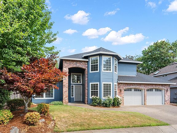 Originally built in 1990, this stunning traditional has been carefully updated both inside and out. As you approach the home you will notice its classic cascading hip roofs, coupled with a grand entrance and two carriage doors which anchor its broad visual presence. Entering the home you find yourself in the vaulted foyer which seamlessly flows into the living room, towards the stunning stairwell or directly into the main hallway and beyond to the great room-kitchen. The owners have taken careful steps to update the home on each floor. The main level features refinished oak hardwoods, new carpet, new designer paint and gorgeous new countertops. Rounding out the almost 1400 square feet is a gorgeous media center with built-ins, updated appliances in the kitchen, a classic laundry room, quaint powder room and the perfect flow pattern to the backyard from the full light patio door off the nook. Between the expansive great room kitchen and stunning formal spaces, this floor reflects both the grandeur and utility evident from classic nineties design. Moving upstairs you will find over one thousand square feet which is home to three full bedrooms and two full bathrooms. The primary suite features a gorgeous double vanity with new counter, a soaking tub, updated tile throughout and a gracious walk-in closet. The additional bedrooms each have their own private vanity while sharing a second full bathroom which boasts updated hard surfaces. Similar to the careful attention paid to the interior spaces, the backyard features a new turf lawn, cedar deck and lower tiered yard space with playhouse. Rare for many homes in Wilsonville, this property boasts direct access to an amazing green space which abuts Willow Creek / Landover Park. With an address less than 1/2 a mile to Meridian Creek Middle School and Wilsonville High School and just a mile from Starbucks and countless restaurants and shops, you don't want to miss this turn-key traditional!