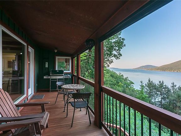 RARE Offering-You Wonât Find Another Property Like this in the Finger Lakes! Fully Remodeled Contemporary 3BR 2BA Ranch w/ Finished Walk-Out Terrace Level Tucked into a Hill Overlooking the South End of Canandaigua Lake. Breathtaking Water Views from Every Room! Enjoy Sunrise from Your Private Deck off the Master Suite, or Relax in the Hot Tub as Dusk Settles in. Entertain in the Great Room w/ Granite Kitchen, Solid Maple Floors, Rustic Ceiling Beams & Stone Faced Wood Burning Fireplace. Grill or Dine on the 1st Floor Balcony/Porch with Roll-Down Screens. Property Includes 2 Wooded Lots on 4.1 Acres w/ Hiking Trails & 129â of Water Frontage. Lower Waterfront Lot Accessed via Short Walk or Drive Down to Walton Point Drive. Escape to Your Very Own Paradise Retreat w/ Private Beach, Permanent Dock, Boat House, Paver Patio & âTiny Houseâ. MILLION DOLLAR VIEWS! Enjoy the Beauty of the Seasons Year- Round or Treat this as Your Vacation Home or Airbnb! Convenient to Bristol Mountain, Wineries & all the Finger Lakes have to Offer!