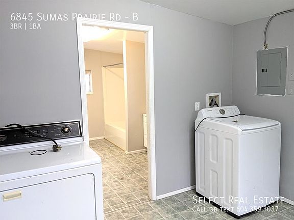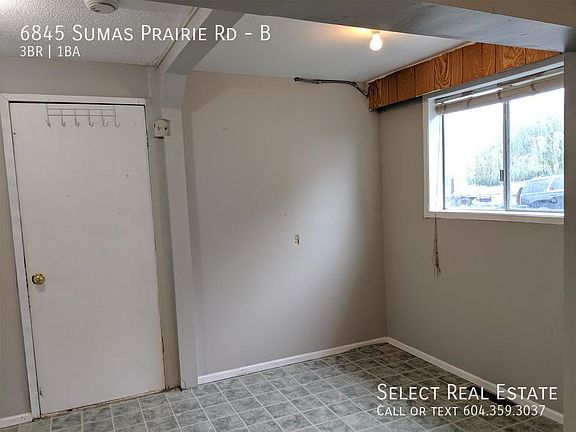 This 1100 square foot apartment home has 3 bedrooms and 1.0 bathrooms. This home is located at 6845 Sumas Prairie Rd #B, Chilliwack, BC V2R 4K1.