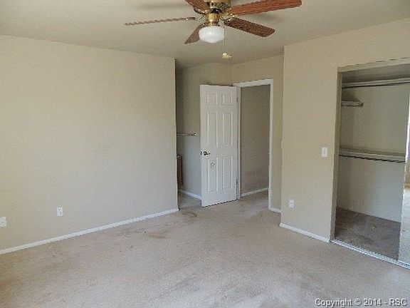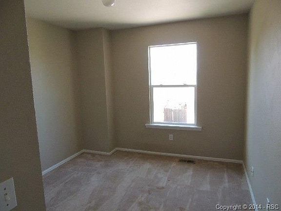 Great 2 story home with a bright and open floor plan in Springs Ranch! Right next to D-49 Elementary school and park with playground. Close to all military bases. New fridge, new stove, new garage door, new outside paint. Wood floor on whole first floor and all new carpet upstairs. Three bedrooms and two bathrooms upstairs with a hall closet for extra storage. On the main level there is a half bathroom, hall closet, bright open living room (high ceiling) leading to the dining room and kitchen with pantry! Just off the kitchen is the attached 2 car garage for the snowy Colorado winters. Good sized fenced backyard. There is also an unfinished basement with laundry area and crawl space for storage. Home sits on a private cul-de-sac.httpyoutu.be/QFSz5mMrDeoOwner pays for trash collection. Tenant responsible for all utilities. Must have a minimum credit score of 600.
