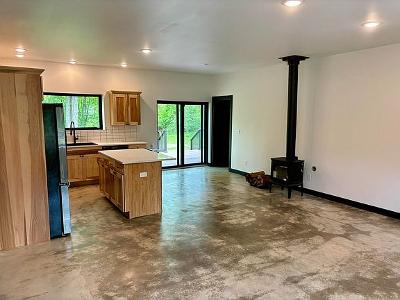 Tired of paying high utility bills? Look no further as this new construction house was designed to be a net zero energy consumption home. What that means is this eco friendly 3 bedrooms, 2 bath, split bedroom ranch runs 100% off of electric and the 6,000 KW solar panel system is capable of supplying the electric needs during normal energy consumption periods. The radiant floor heating/cooling system keeps the temperature inside the home a constant even temp without making a sound. The highly efficient 10'' thick walls also helps eliminate outside noise. But, for those looking for the sounds of nature, the 6+ acres of land is full of wildlife out the back sliding door. The 24x24 attached garage entrance and front door offer a zero step access for easy ingress/egress.