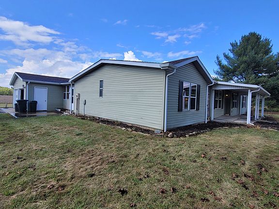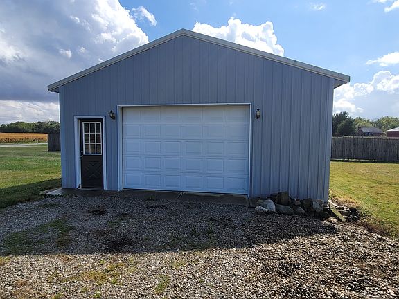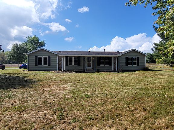 Charming 3 bedroom 2 bath home sitting on 1.15 acres. Large living room with an electric insert fireplace. Primary bedroom and bath offers a walk-in closet, double sinks and walk in shower. Split floor plan. Kitchen has a breakfast bar. Separate dining room. Bonus room/office. 2 car attached garage and a separate small pole barn. Fenced-in backyard, firepit, covered front porch, covered back deck and a small enclosed side porch. Live in the country but only a 10 minute drive to town.