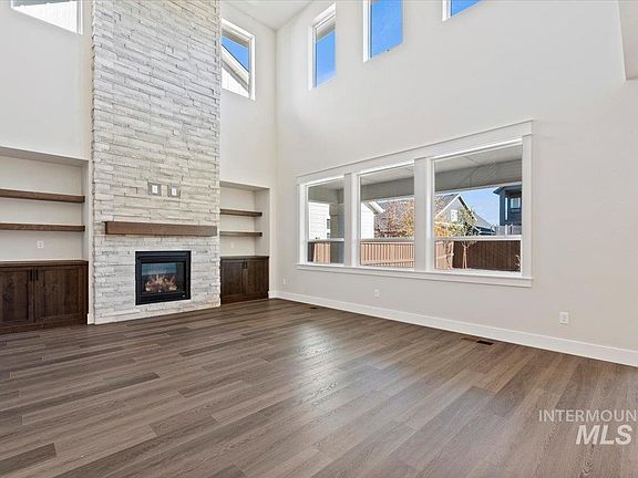 Welcome to the amazing Fairbourne Community! This brand new home is the perfect blend of modern design & comfort, ready for it's new family. The striking two-story living room features expansive windows that flood the space with natural light, creating an open & airy atmosphere. At the heart of the room, a stunning floor-to-ceiling stone fireplace adds warmth and elegance. The thoughtfully crafted design combines the rich warmth of wood with black metal accents, resulting in a serene and luxurious ambiance in the home. With 4 spacious bedrooms, 3.5 bathrooms, a bonus room, and a den, this home offers ample space for all your needs—whether you're working, entertaining, or simply relaxing. The flexible layout allows for versatile living options, making it ideal for any lifestyle. Step outside to the covered front porch and east facing extended back patio, perfect for enjoying a morning coffee or unwinding in the evening. but a sanctuary where family friends can gather, relax, and create memories!