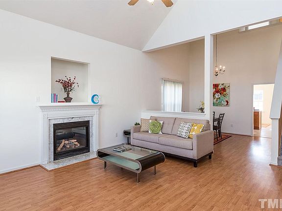 What an incredible deal for a well maintained, 4BR, 1st floor master w/ bonus room! Bright & open floor plan w/ striking wood laminate flrs & gas fireplace upon entry! Formal dining area w/ south facing, winter bright kitchen & breakfast nook at rear of home. Custom retractable awning in extra large patio! Fully fenced in yard! Idyllic front porch! Large 2ndary BR's & a huge bonus rm w/ access to 3rd full bath! Long and flat driveway! Great location only 20 min to downtown Raleigh, 30 min to RDU & RTP!